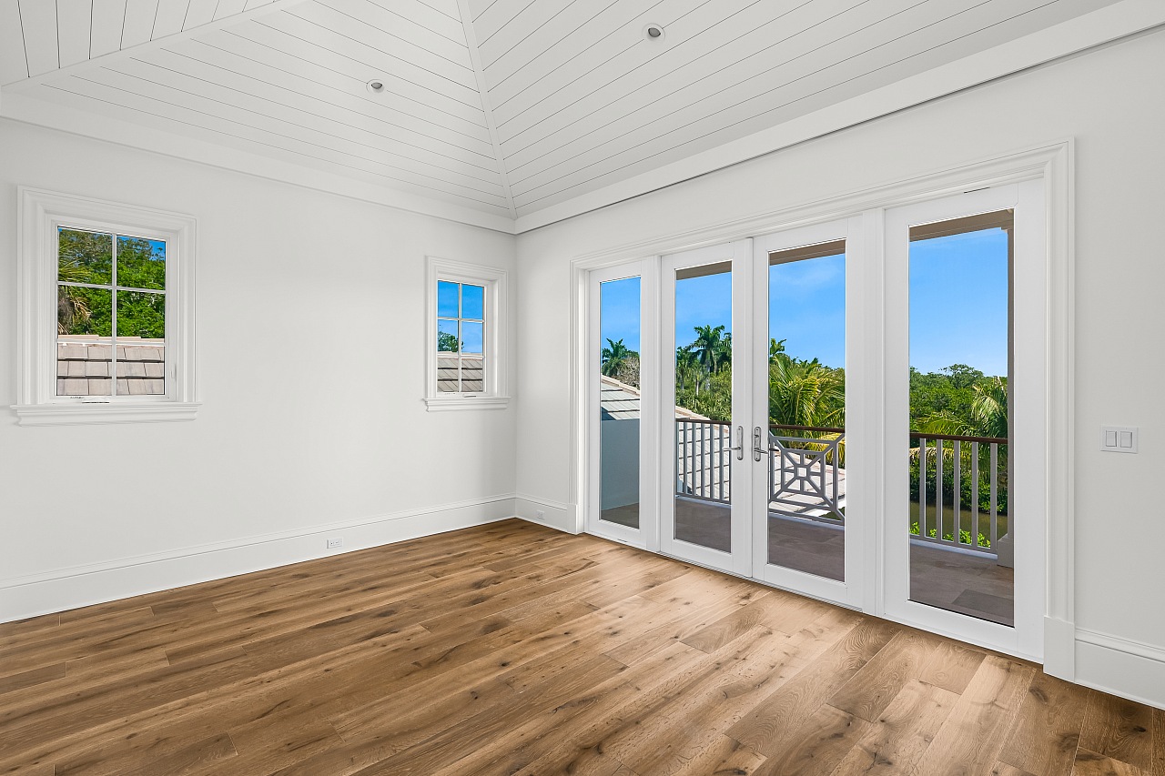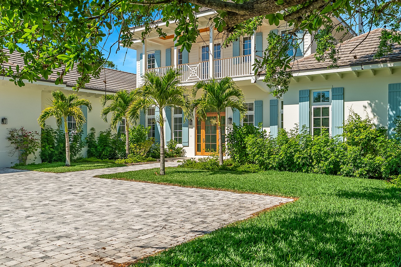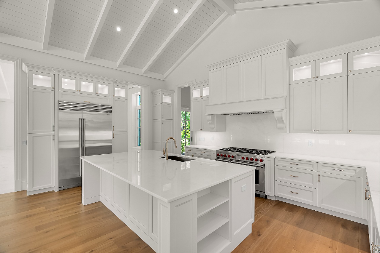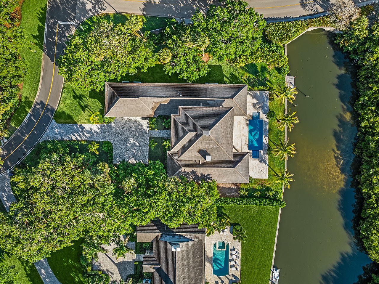 Encompassing 7,773 total square feet, this custom residence—designed by Gregory Anderson and built by Water’s Edge Estates—blends architectural drama with serene coastal living. Highlights include intricate ceiling details, a three-bay garage, a resort-style pool and spa, guest balconies, a covered lanai, and a fully equipped outdoor kitchen.