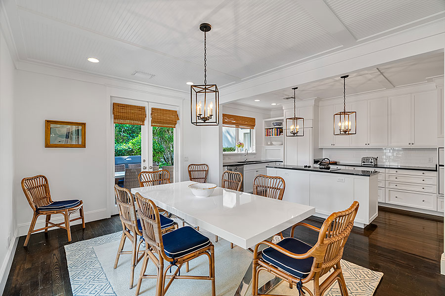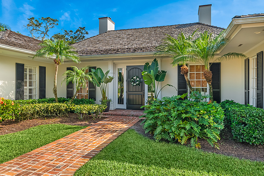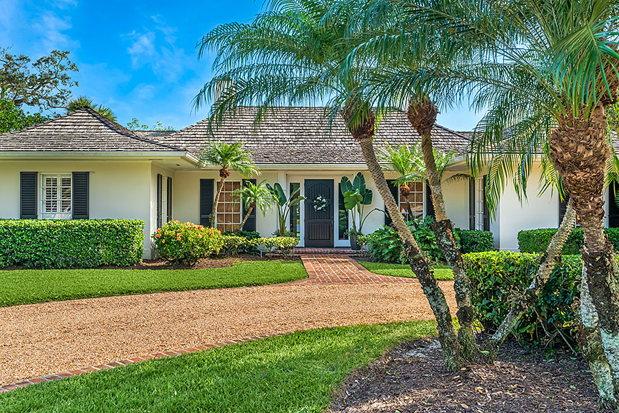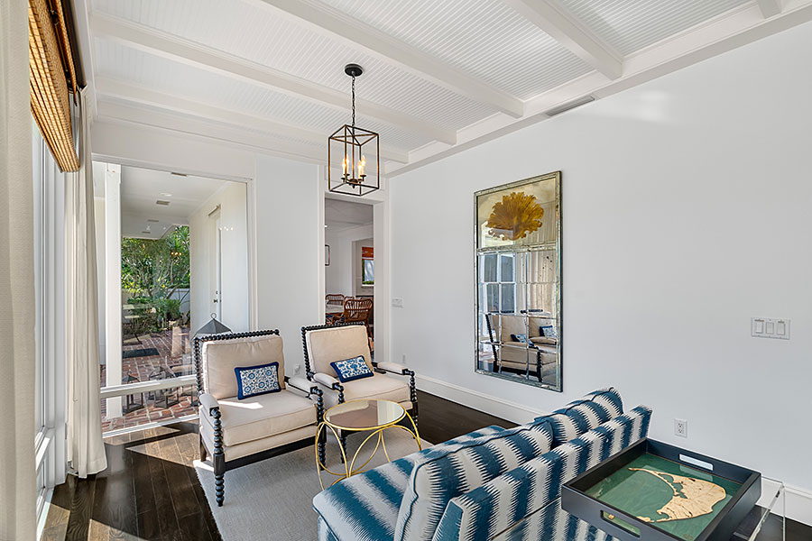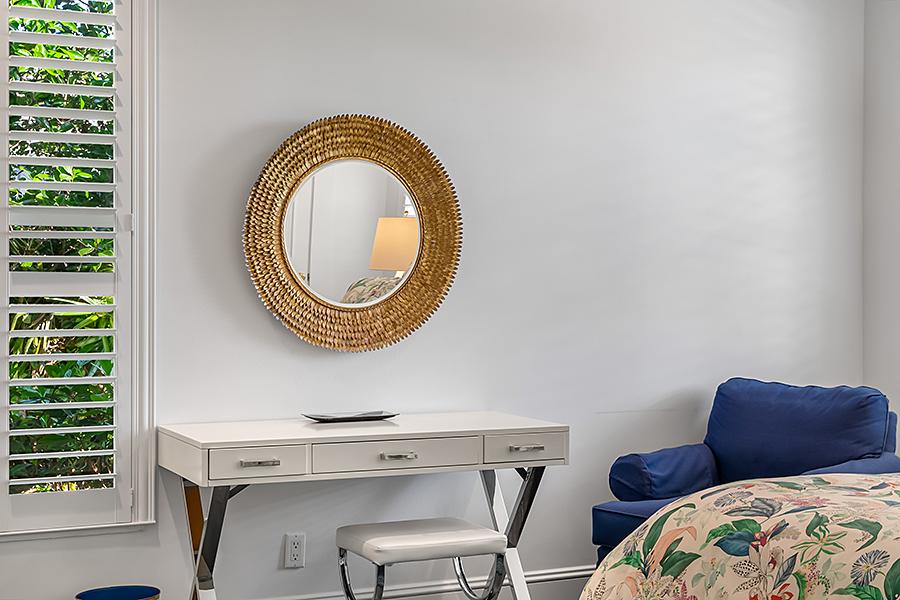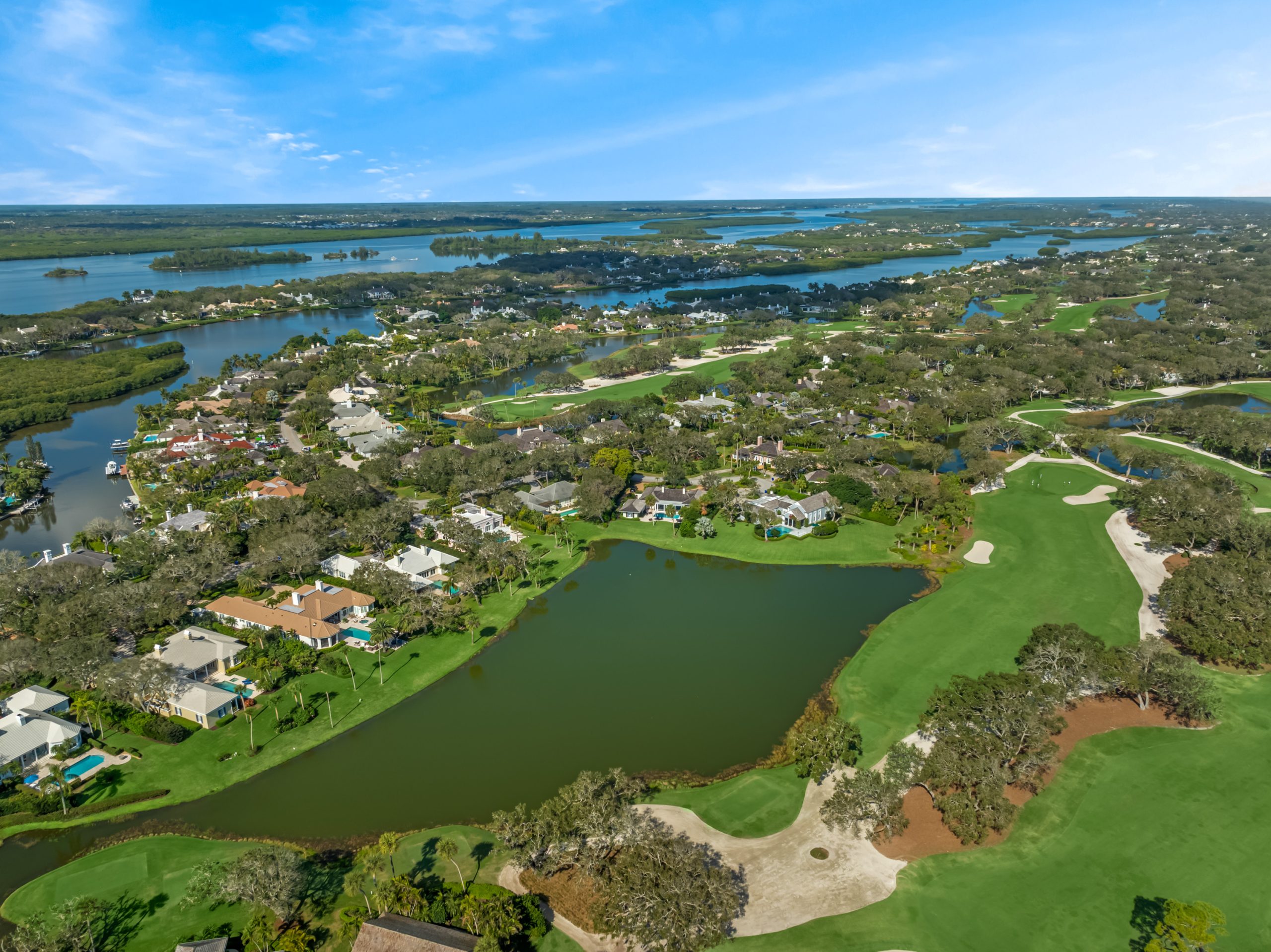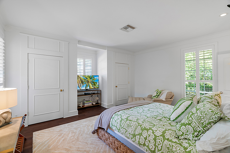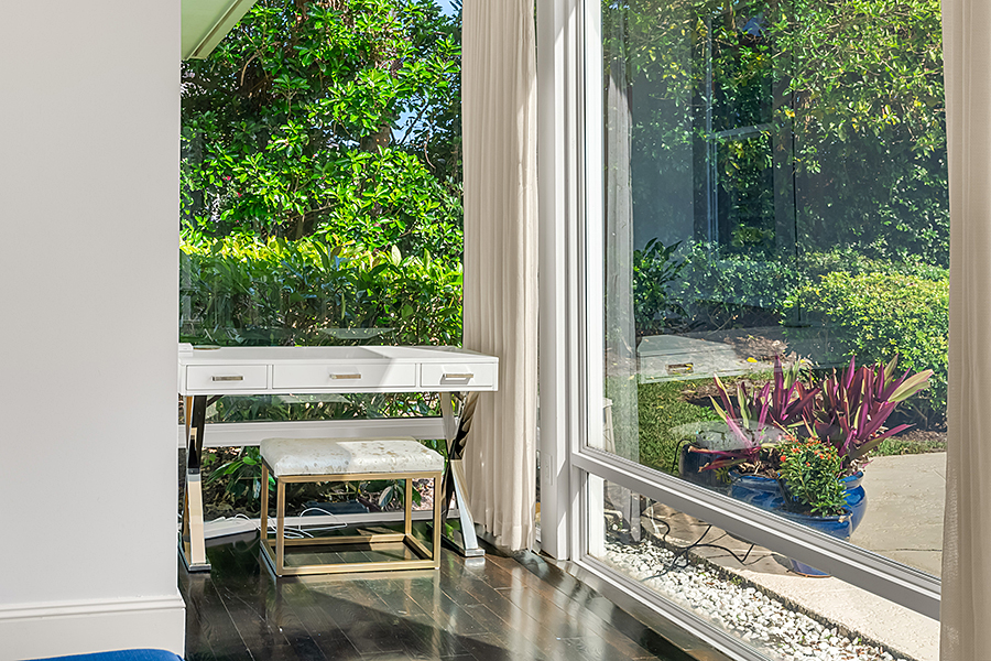 Tucked at the end of a quiet cul-de-sac, this 3BR + office main residence with a 2-room guest cabana offers serene south-facing lake and golf views. A spacious living room with fireplace and tray ceilings flows into an enclosed lanai, ideal for year-round enjoyment. The open kitchen is perfect for entertaining with a wet bar, premium appliances, and generous storage. Custom millwork and hardwood floors add timeless character. Outside, a private pool and lush gardens create an inviting retreat for relaxing or hosting under the stars.