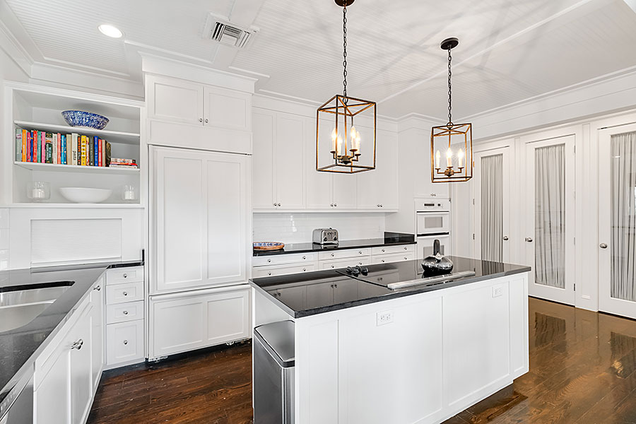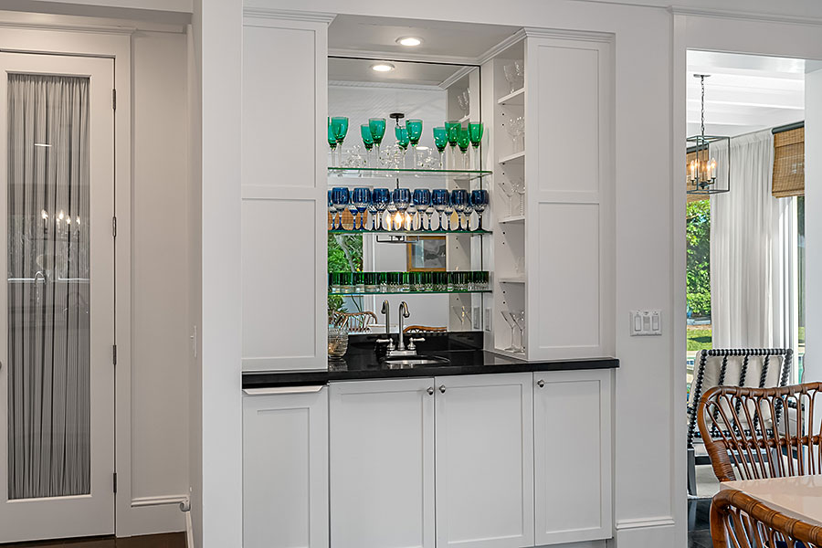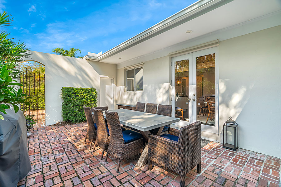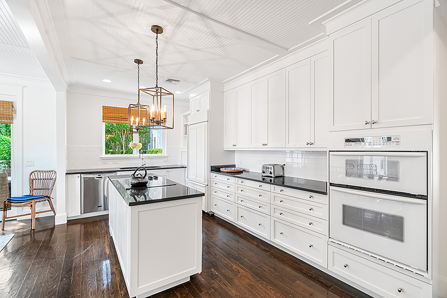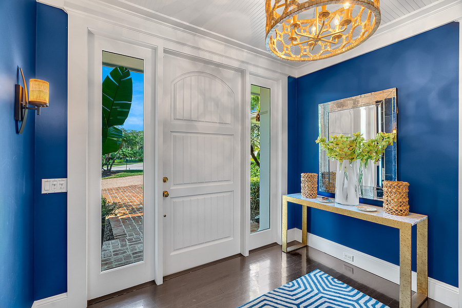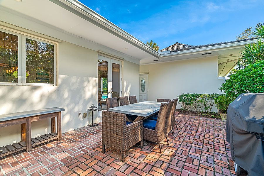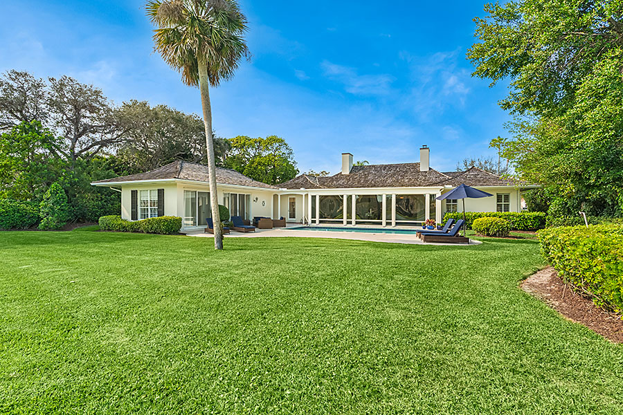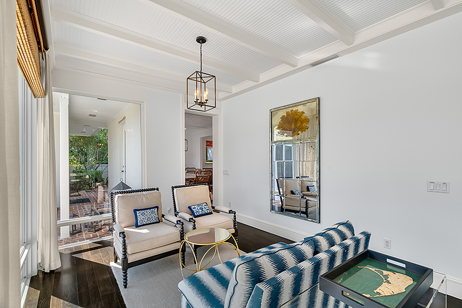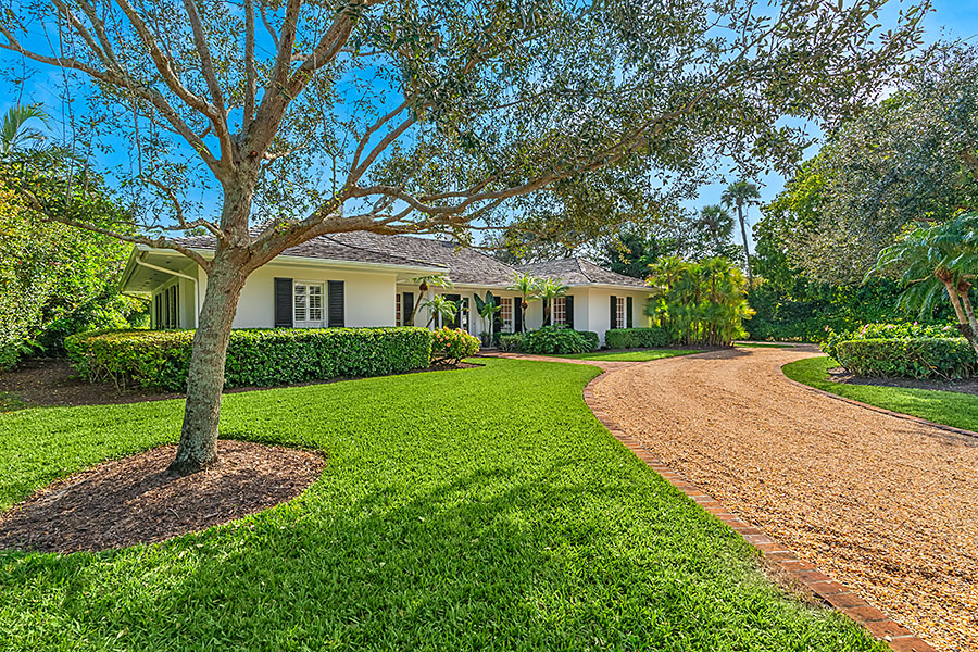 Tucked at the end of a quiet cul-de-sac, this 3BR + office main residence with a 2-room guest cabana offers serene south-facing lake and golf views. A spacious living room with fireplace and tray ceilings flows into an enclosed lanai, ideal for year-round enjoyment. The open kitchen is perfect for entertaining with a wet bar, premium appliances, and generous storage. Custom millwork and hardwood floors add timeless character. Outside, a private pool and lush gardens create an inviting retreat for relaxing or hosting under the stars.