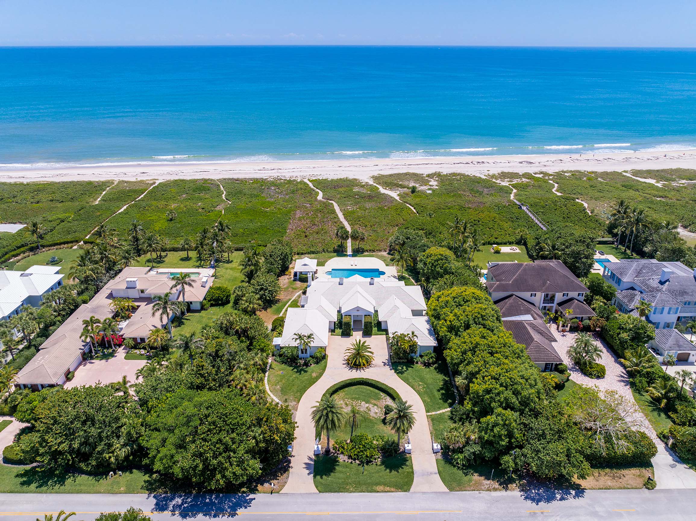 Generational opportunity to purchase one of the largest oceanfront Old Riomar estate lots on nearly 2.5 acres with 150’ of oceanfront, accreting beach, and private dune walkover. Renovated 5,200± SF single-story home offers 6BR, including a 1BR/1BA guest cottage: gourmet kitchen, updated baths, and a 50’x20’ pool with new deck. One of only 3 Old Riomar properties with 150’ frontage.
