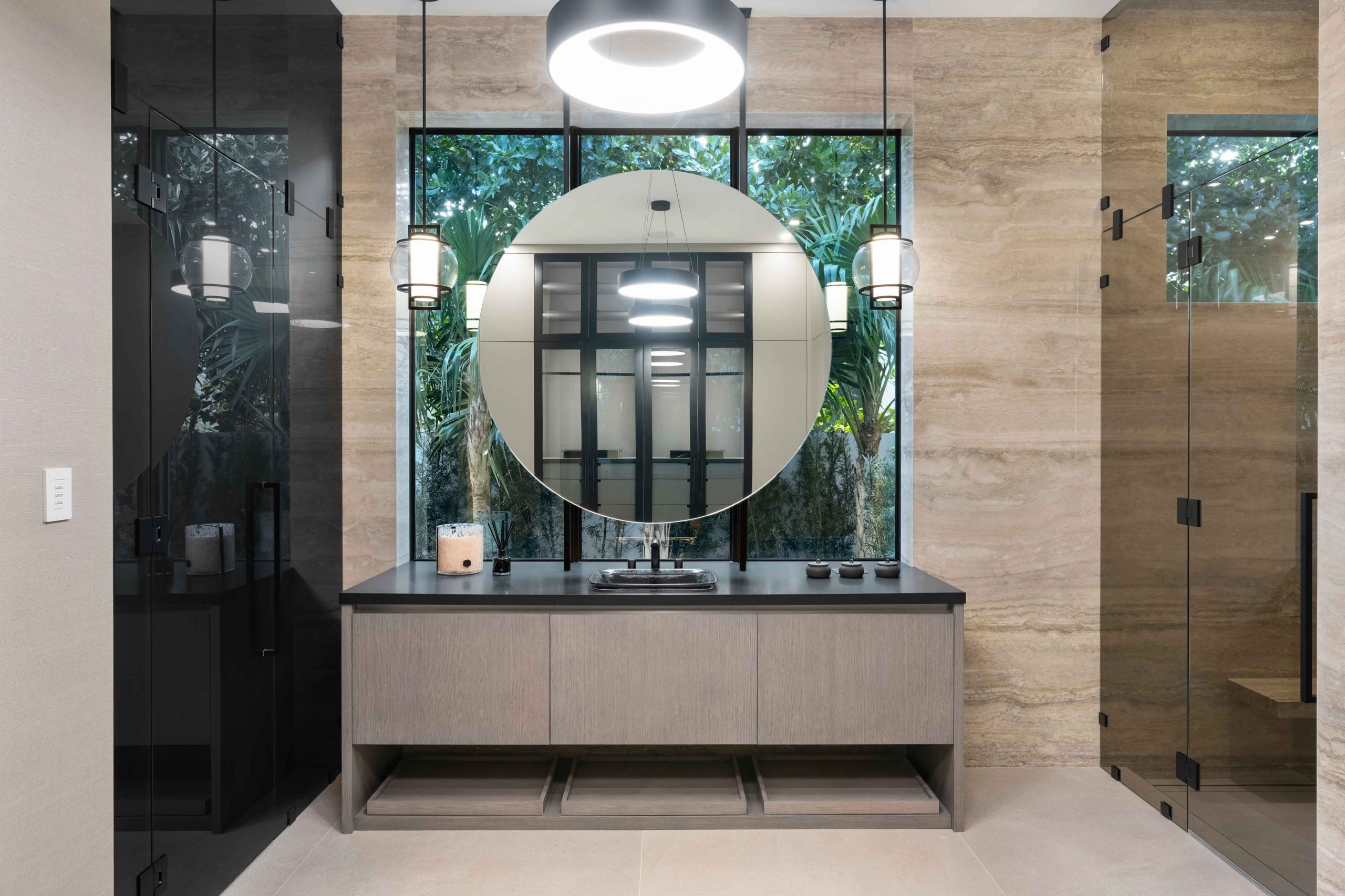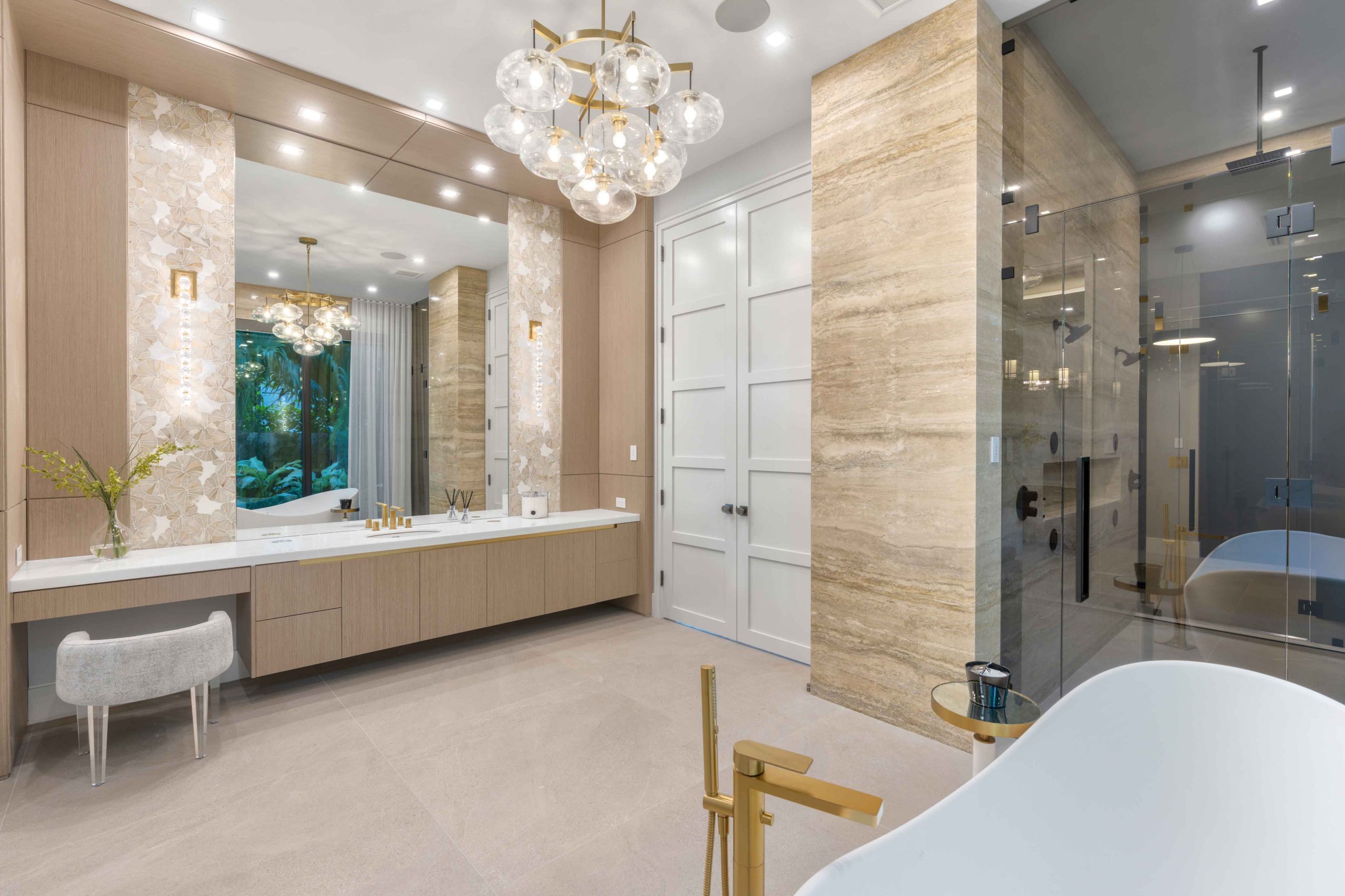 From the dramatic double-height entry and sculptural staircase to the hand-selected global finishes, every detail exudes world-class refinement. Exotic bookmatched Patagonia quartzite, Cristallo, and Italian travertine adorn the interiors, complemented by natural coral stone and limestone exteriors.