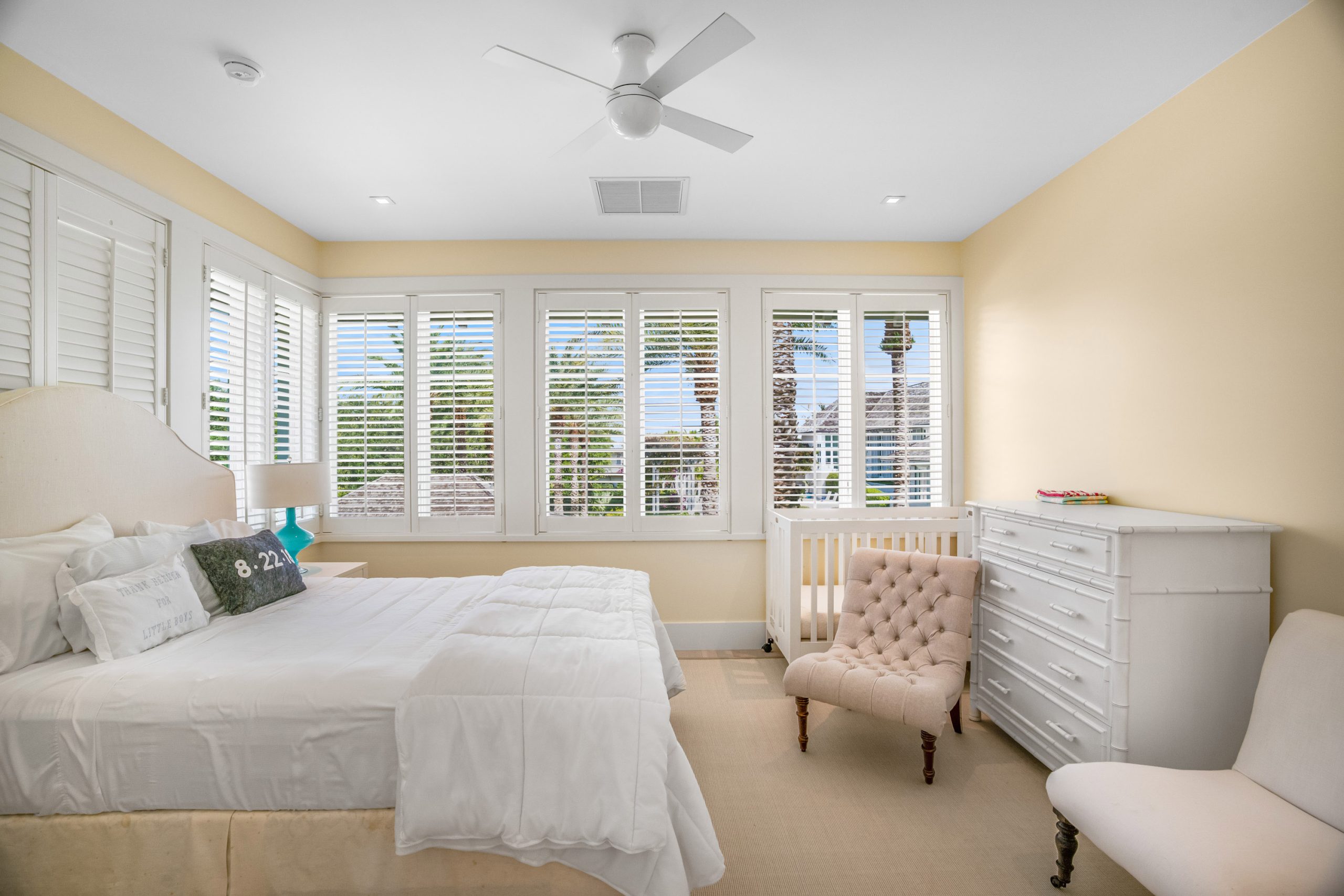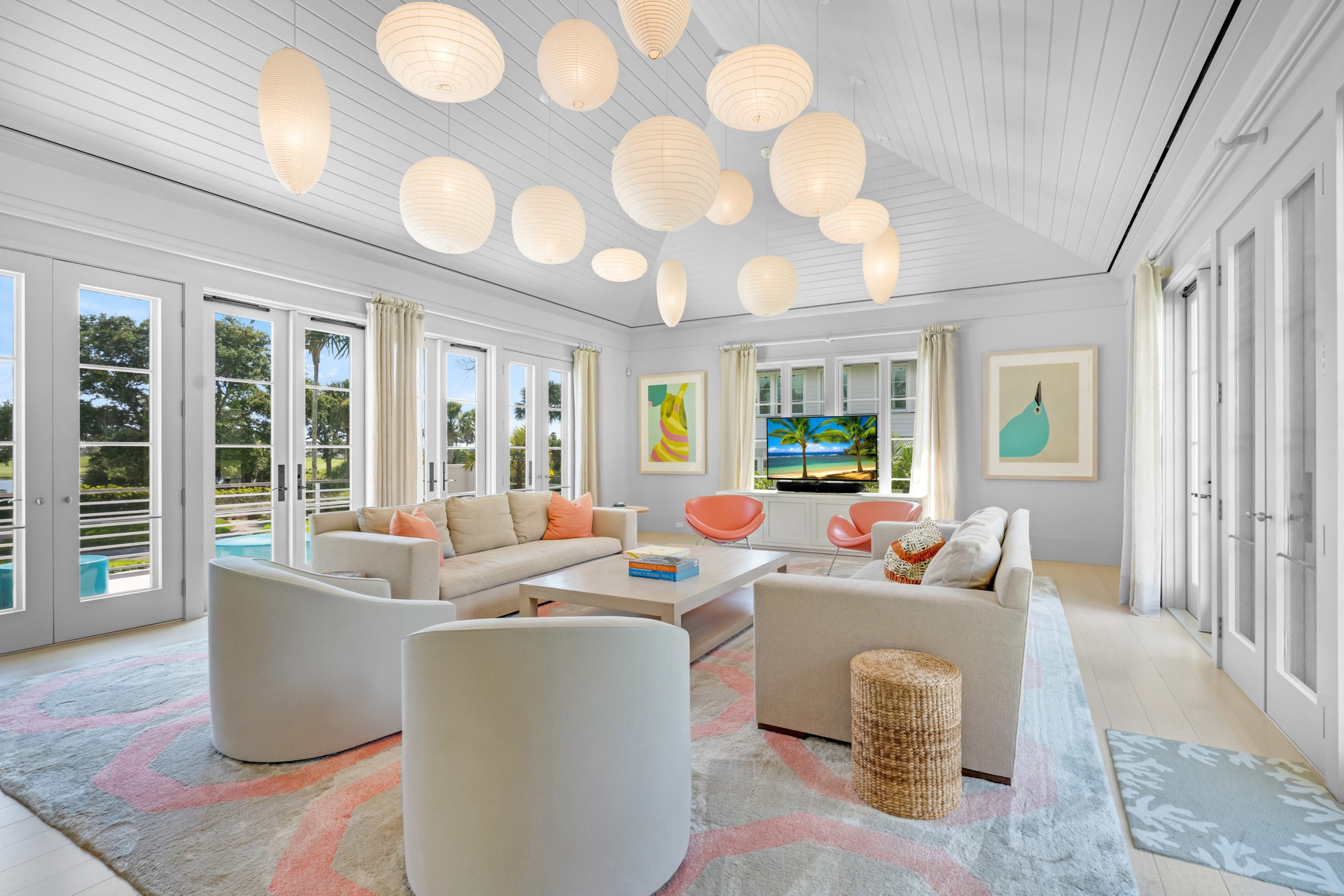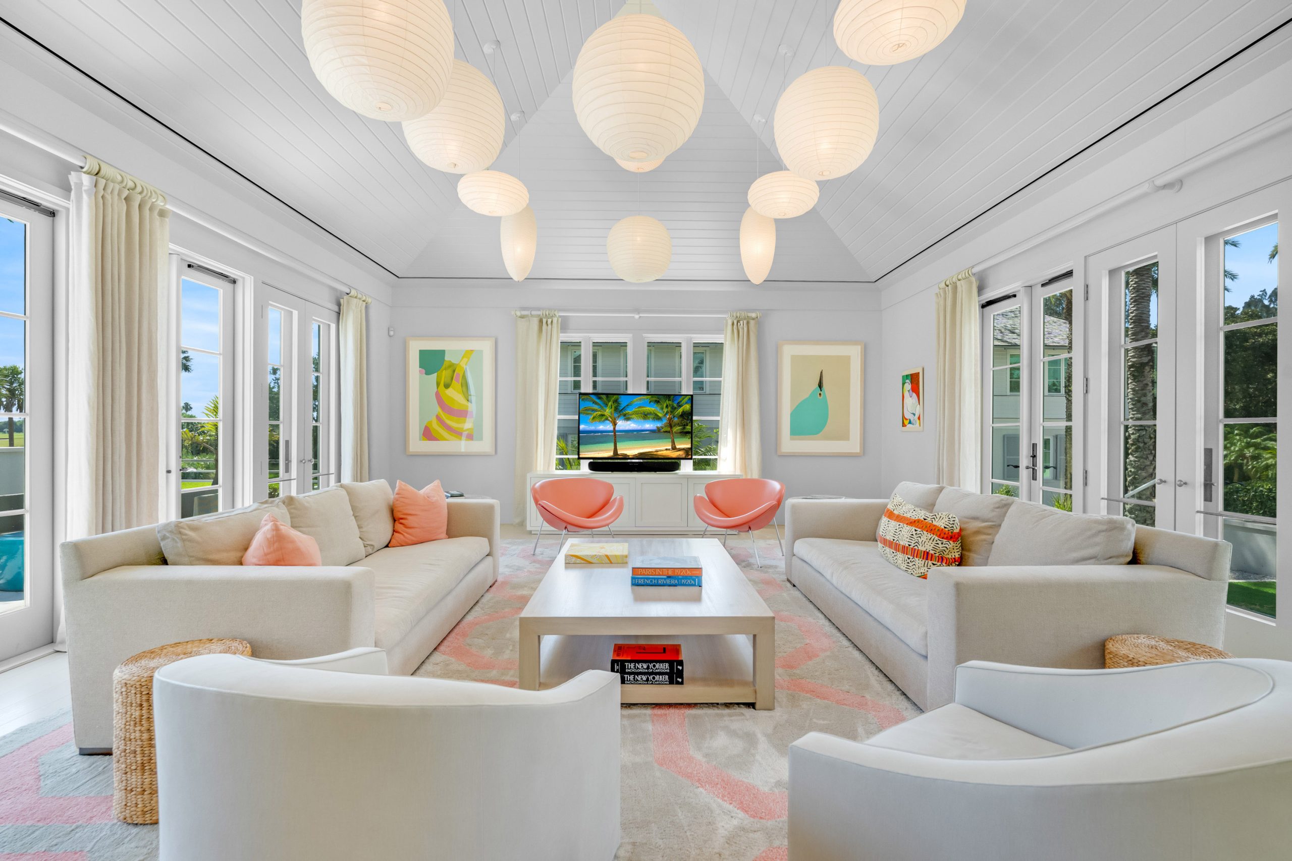 Conceived by the acclaimed architectural team of Merrill, Pastor & Colgan, this exclusive retreat was designed to balance generous shared spaces with mindful separation for guests and extended family. Four individually crafted guest cottages—each with multiple bedrooms, sitting areas, kitchenettes, private balconies, and direct courtyard access—offer privacy, comfort, and ease.