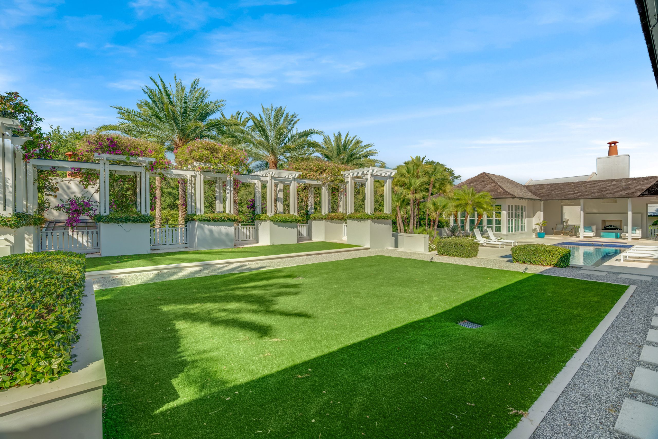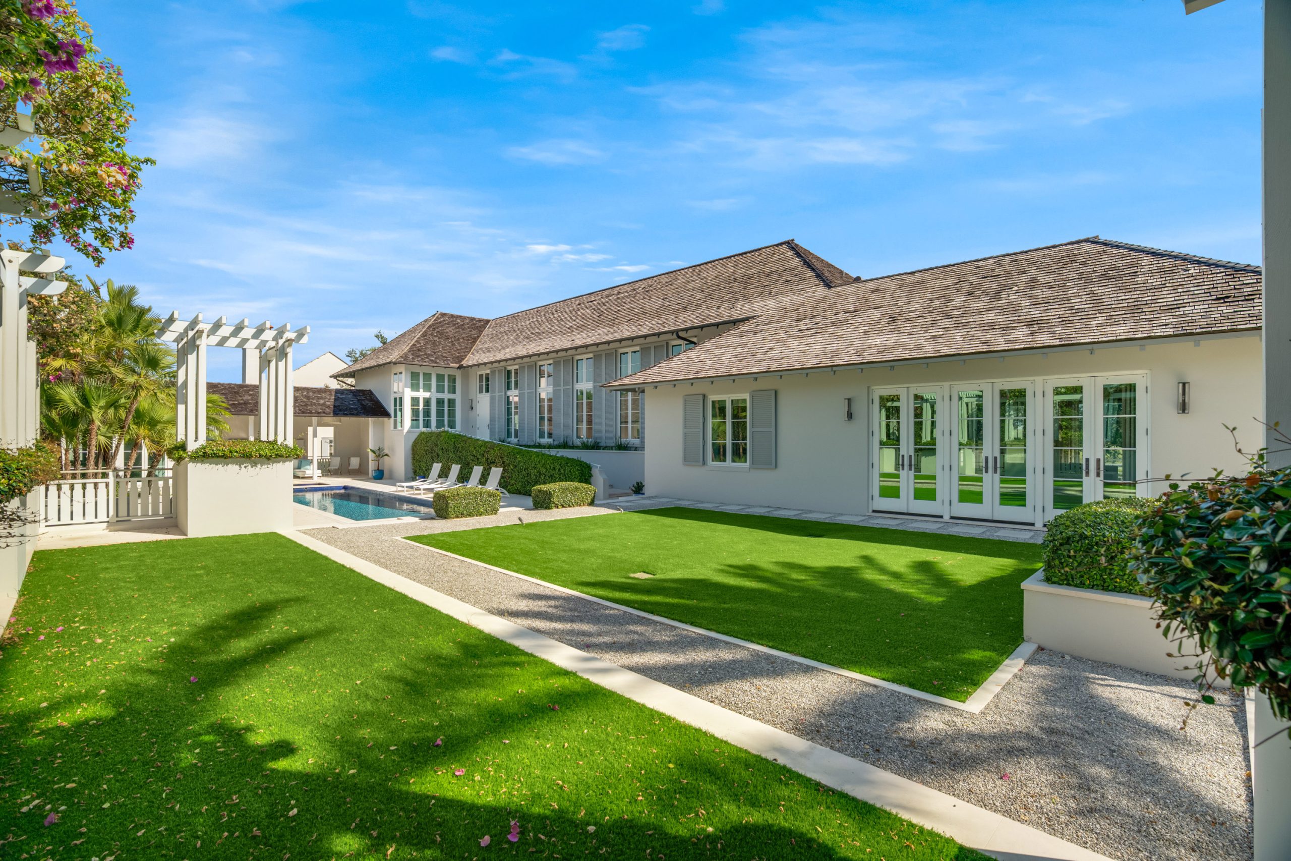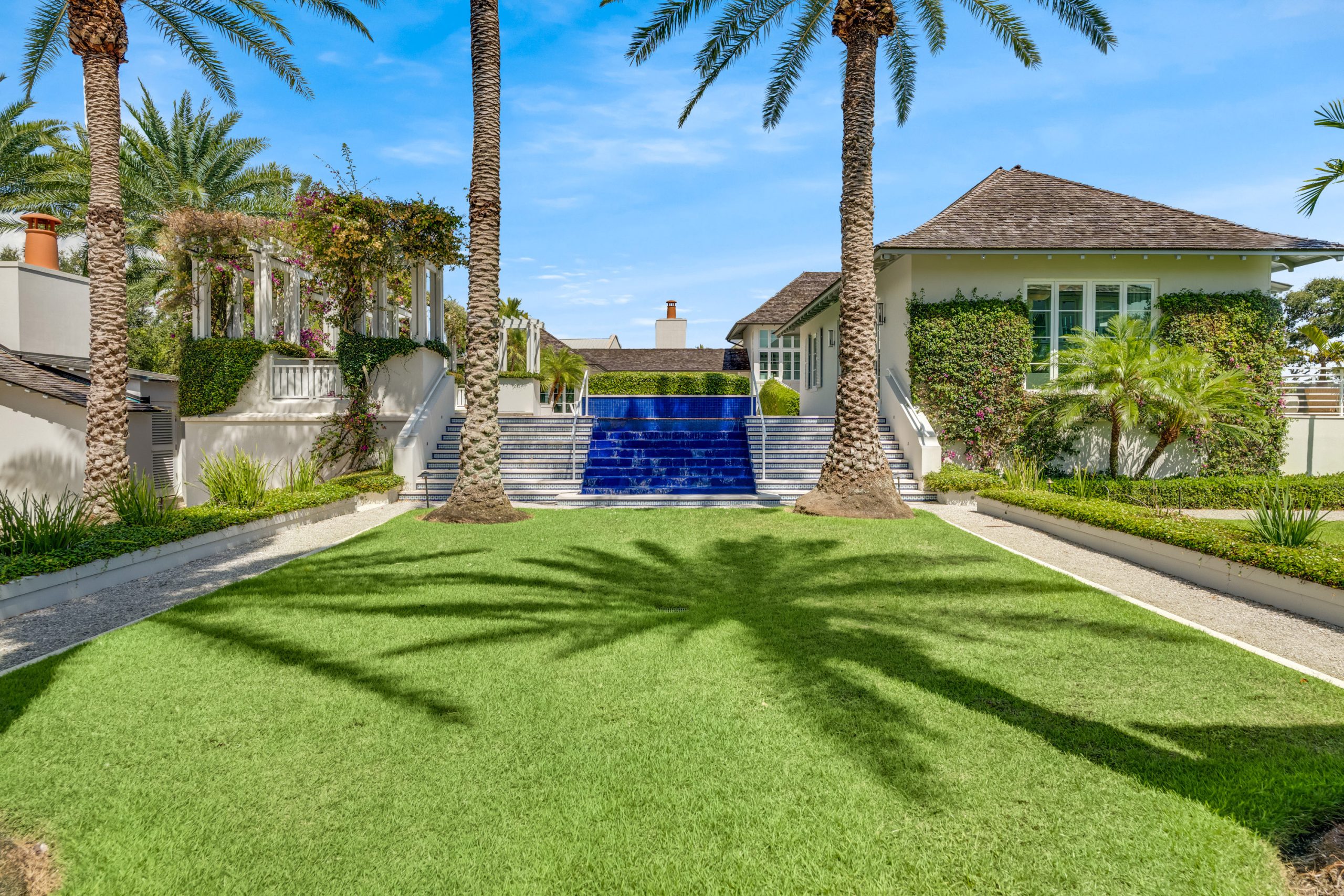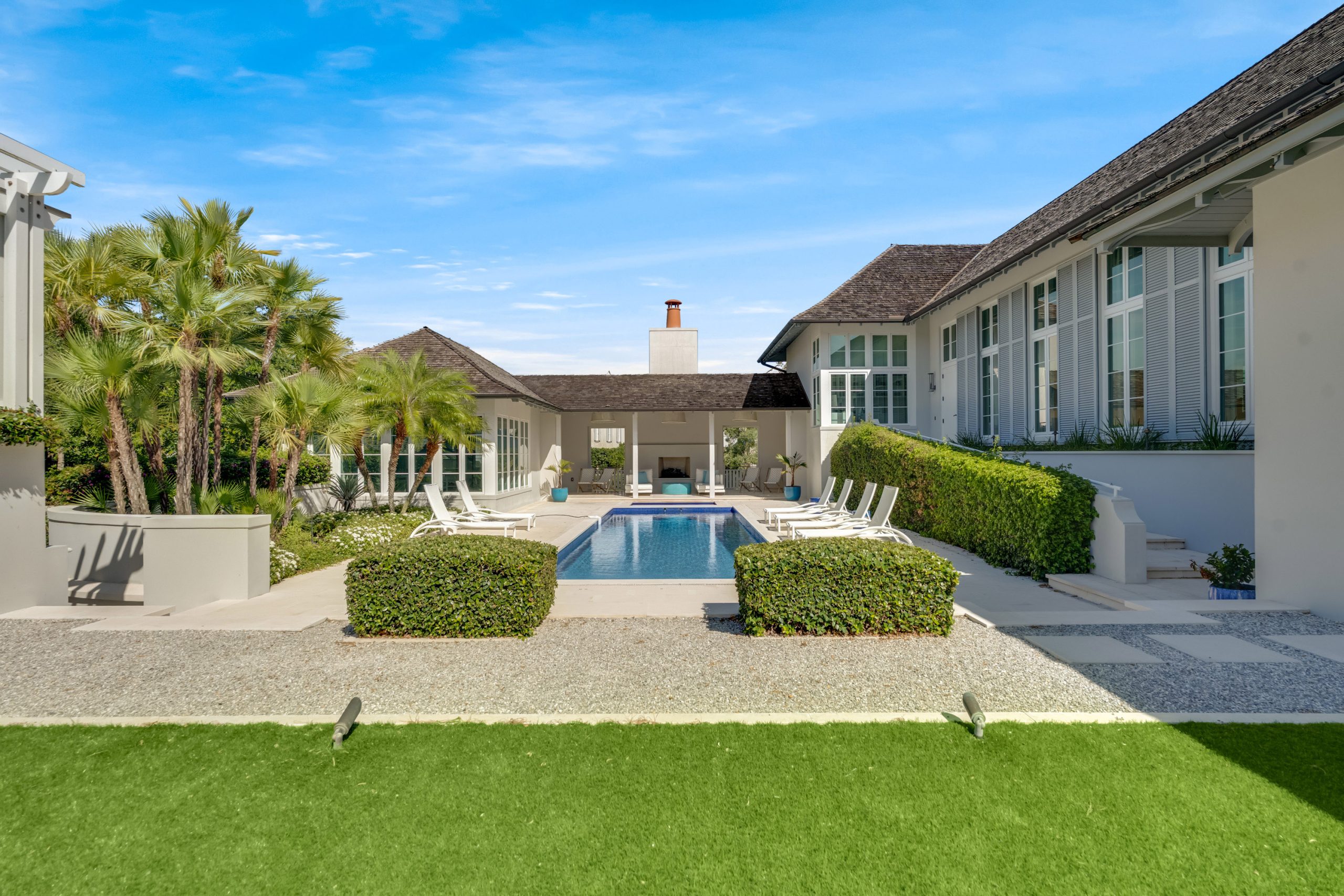 Thoughtfully arranged around a verdant central courtyard, with a shimmering pool and manicured gardens just beyond, the property invites relaxed entertaining, extended visits, and seamless indoor-outdoor living.