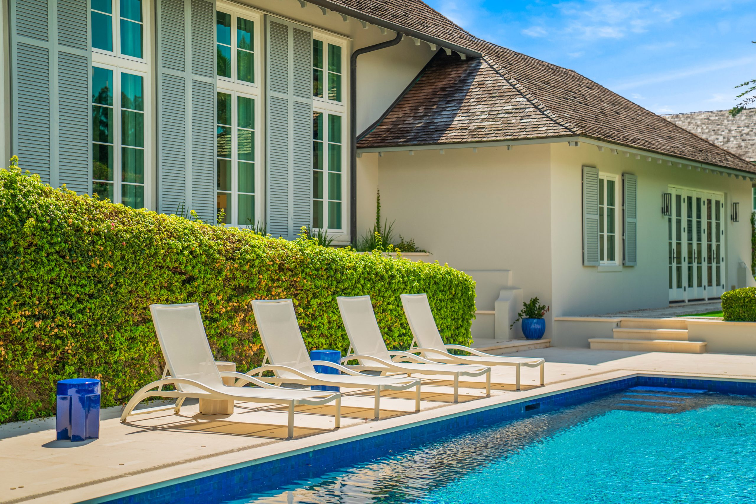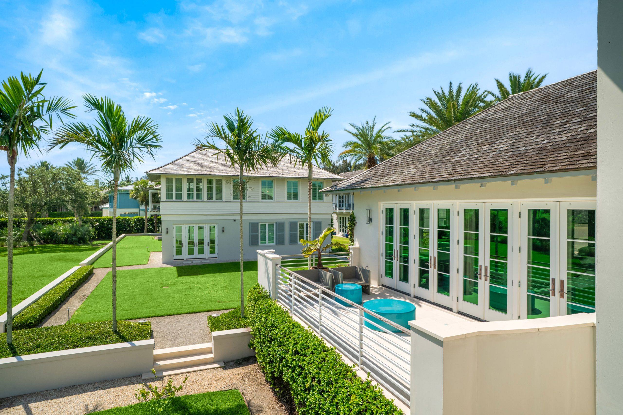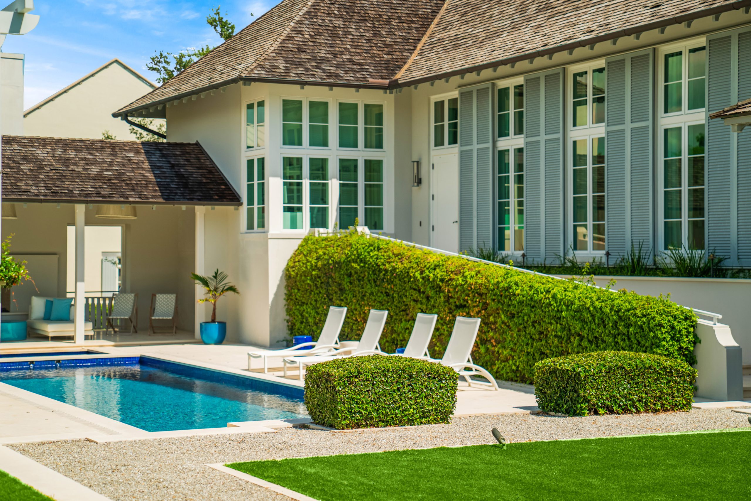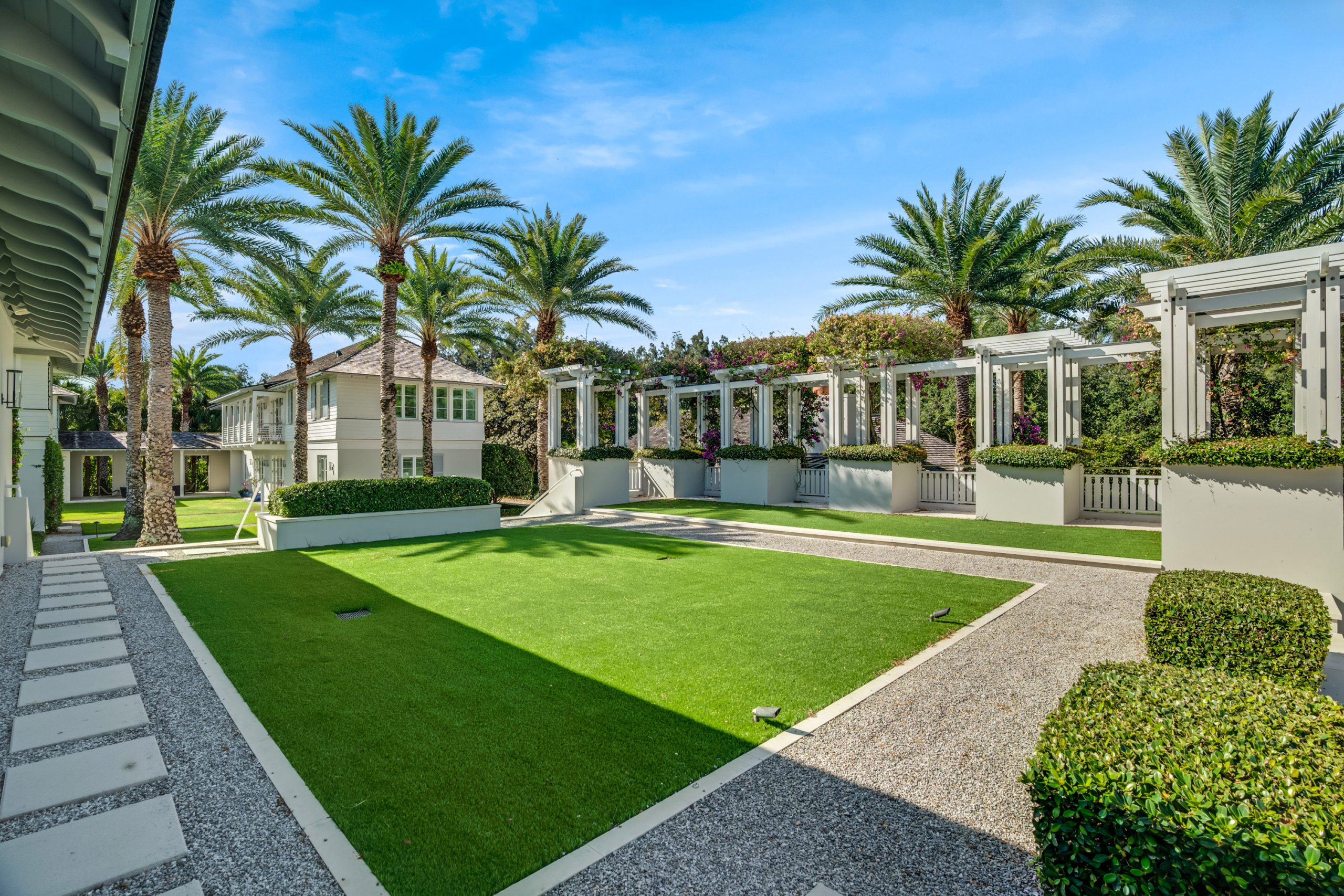 Thoughtfully arranged around a verdant central courtyard, with a shimmering pool and manicured gardens just beyond, the property invites relaxed entertaining, extended visits, and seamless indoor-outdoor living.