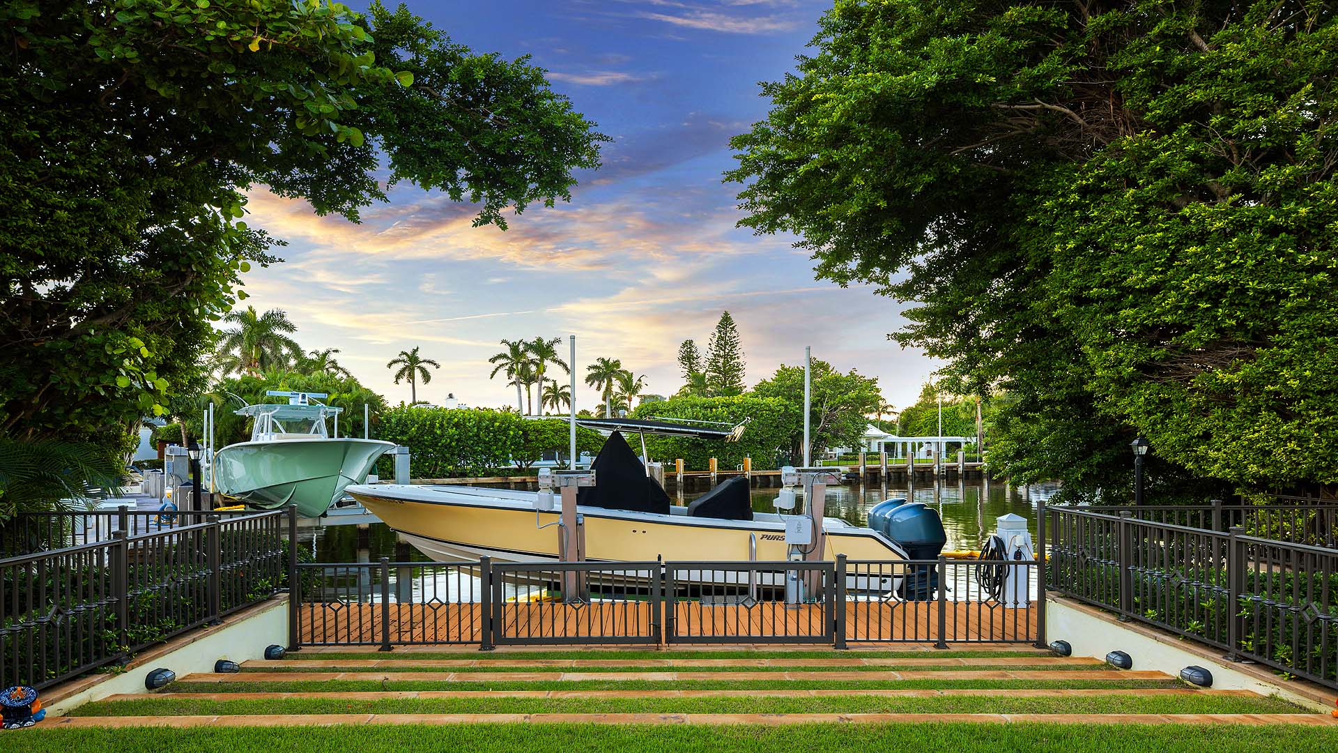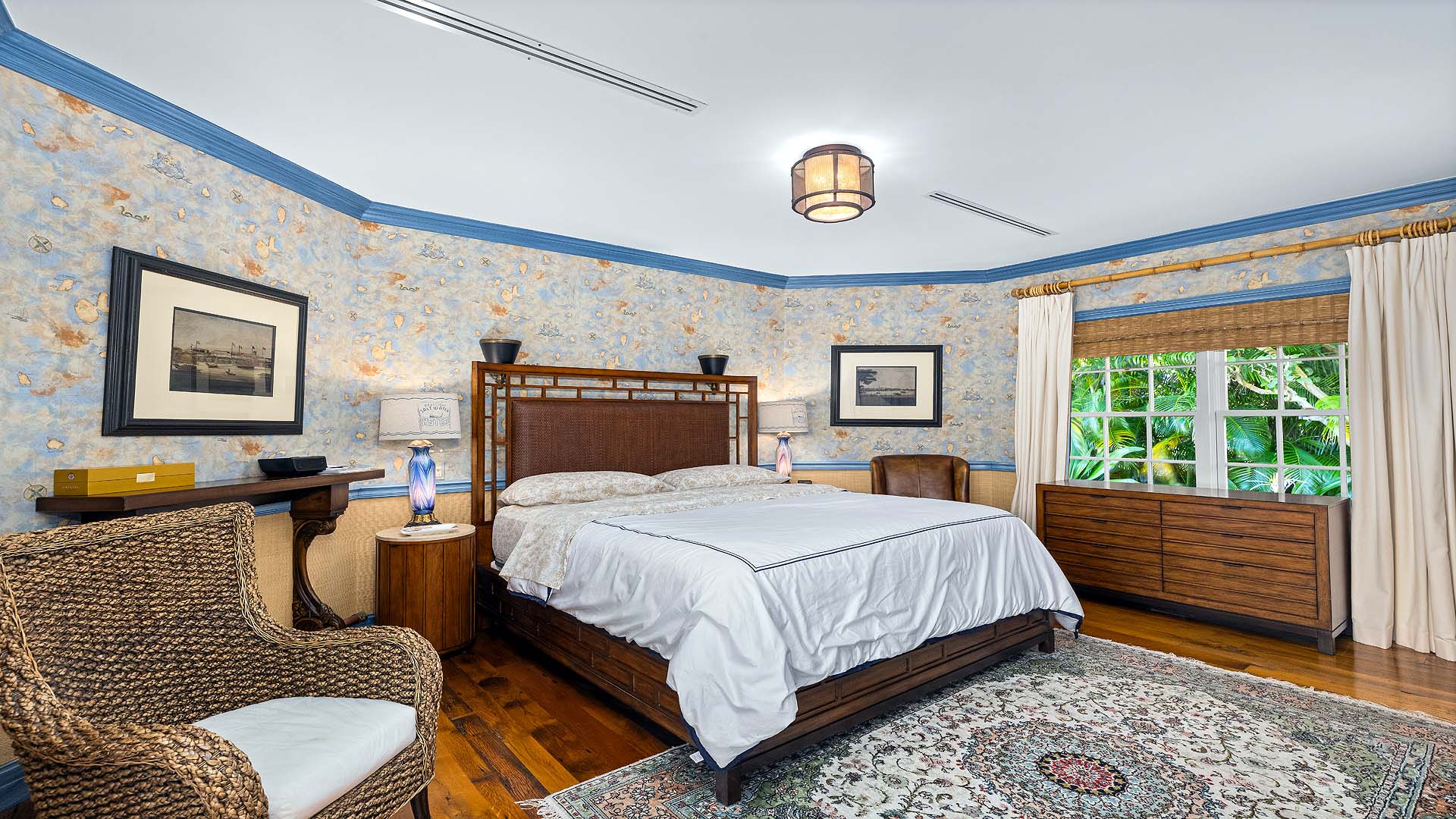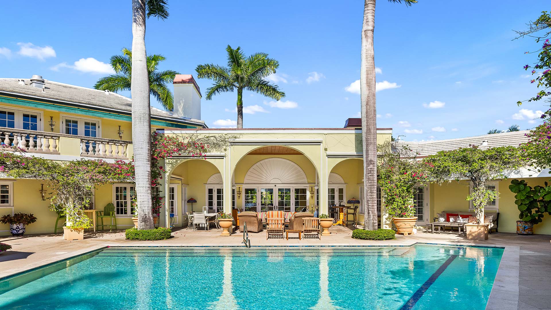 Set on three-quarters of an acre in the heart of Gulf Stream, Palm Beach County's most exclusive seaside enclave, this classic Bermuda-style estate is a rare and remarkable offering that exudes character, privacy, and sophistication at every turn. The residence is offered furnished and includes boat. Surrounded by lush bougainvillea, mature palms, and manicured gardens, the property offers a tranquil retreat just moments from the ocean and Gulf Stream's private beach access, located only a few blocks away.