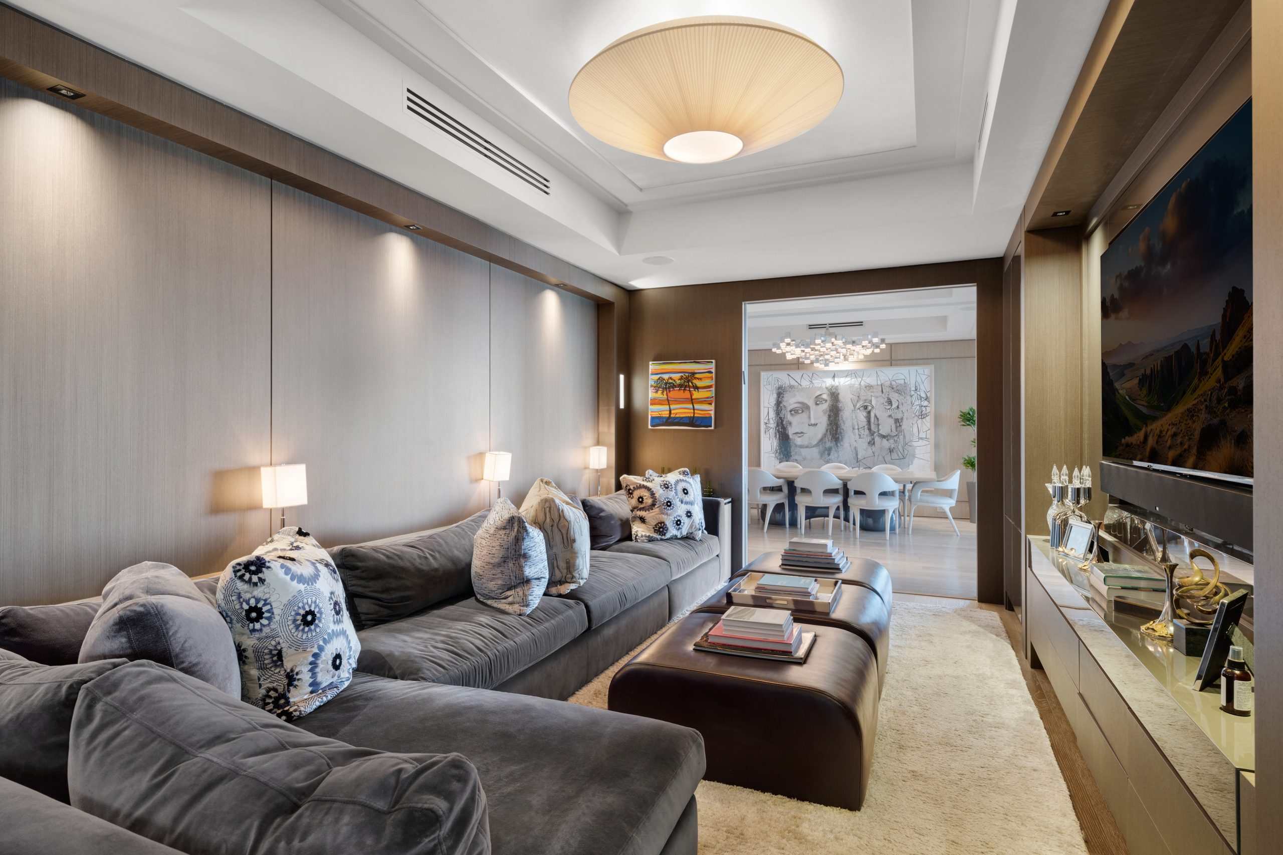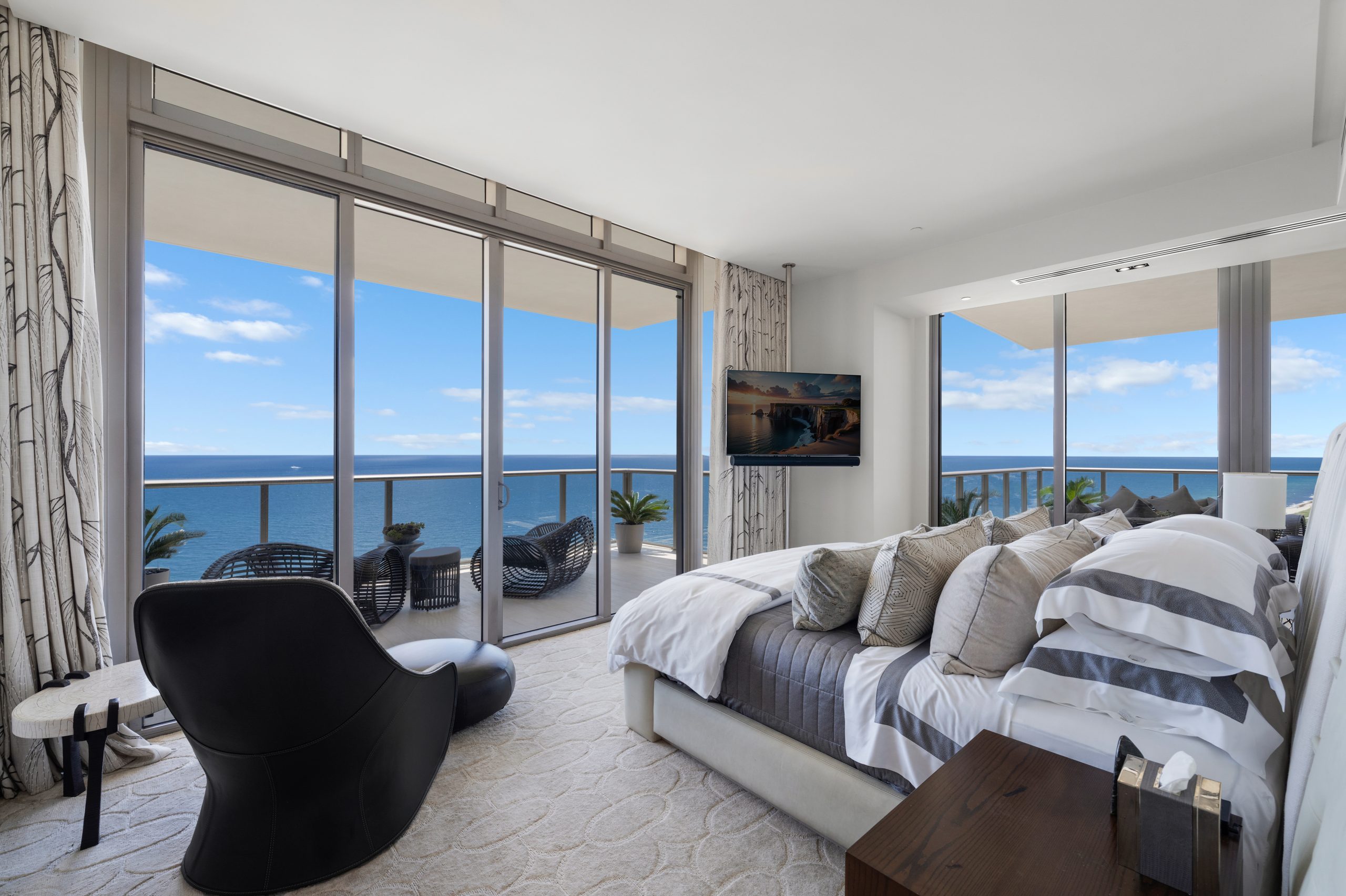 Boasting 3,884 square feet of sophisticated living space, this modern three-bedroom, three-and-a-half-bathroom residence showcases floor-to-ceiling windows throughout, ensuring every room captures breathtaking panoramas of the ocean, bay, and city skyline. The thoughtful design includes a dedicated media room and multiple balconies, each presenting its own spectacular perspective across 1,132 square feet of outdoor terraces.